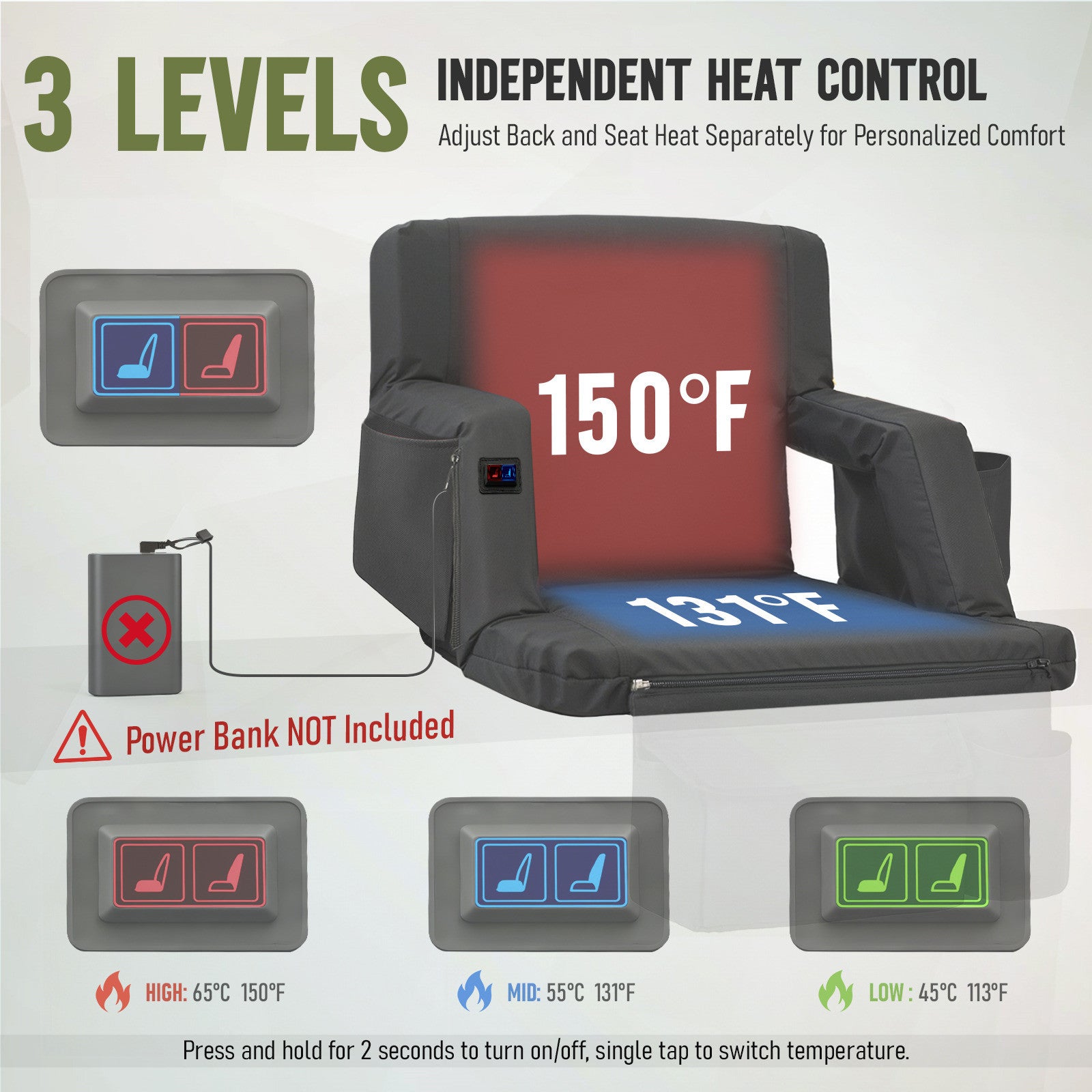 Overmont Heated Stadium Seat with Back Support